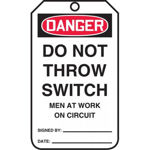 Accuform, MDT207PTM, RP-Plastic Tag: "Do Not Throw Switch Men at Work on Circuit", Pack of 5 pcs