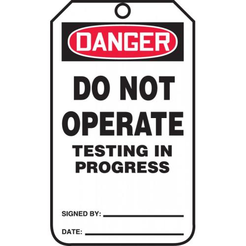 Accuform, MDT216CTP, PF-Cardstock Tag: "Do Not Operate Testing in Progress", Pack of 25 pcs
