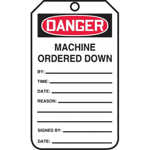Accuform, MDT240LTP, 5-3/4" x 3-1/4" HS-Laminate OSHA Tag: "Machine Ordered Down", Pack of 25 pcs