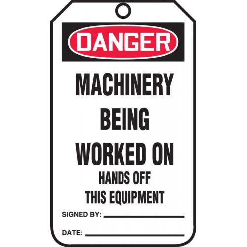 Accuform, MDT242PTM, RP-Plastic Tag: "Machinery Being Worked on Hands Off...", Pack of 5 pcs