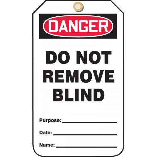 Accuform, MDT243PTP, 5-3/4" x 3-1/4" RP-Plastic Tag: "Do Not Remove Blind", Pack of 25 pcs