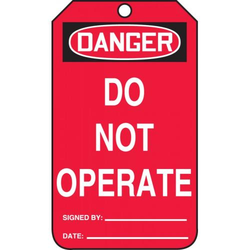 Accuform, MDT250LTP, 5-3/4" x 3-1/4" HS-Laminate OSHA Tag: "Danger Do Not Operate", Pack of 25 pcs