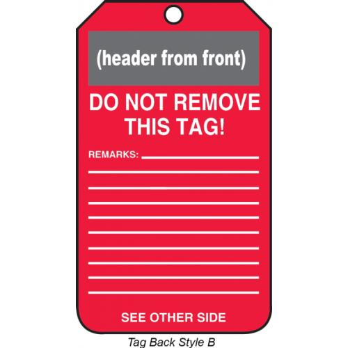 RP-Plastic Tags Durable tag withstands pulls and tears in dirt and grease environments. High-strength plastic tags are water-resistant - to withstand weather conditions. The rigid plastic is flexible, yet will not readily break down over a wide temperature range. Good for indoors and outdoors use. Writable surface is abrasion resistant.