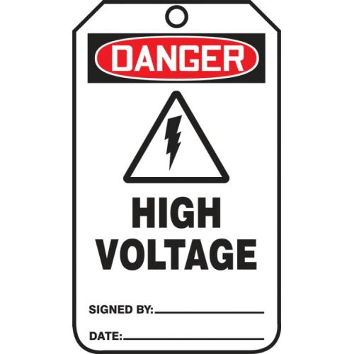 Accuform, MDT257CTM, 5-3/4" x 3-1/4" PF-Cardstock Tag: "High Voltage", Pack of 5 pcs