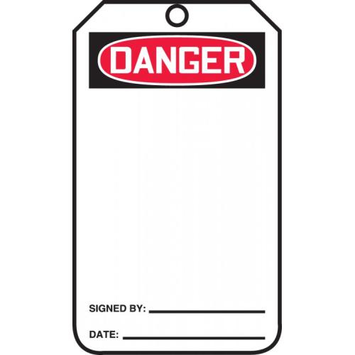 Accuform, MDT281CTP, 8-1/2" x 3-7/8" PF-Cardstock OSHA Tag Blank: "Danger", Pack of 25 pcs