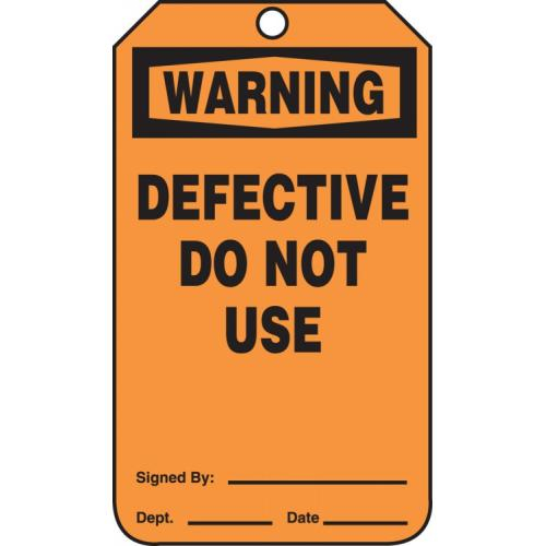 Accuform, MDT303PTP, 5-3/4" x 3-1/4" RP-Plastic Tag: "Defective Do Not Use", Pack of 25 pcs