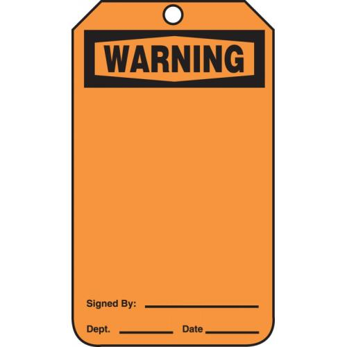 Accuform, MDT311LPP, Self-Laminating RP-Plastic OSHA Tag Blank: "Warning", Pack of 25 pcs