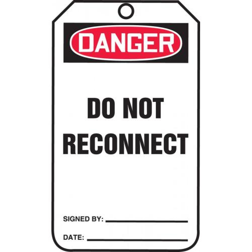 Accuform, MDT627PTP, 5-3/4" x 3-1/4" RP-Plastic Tag: "Danger Do Not Reconnect", Pack of 25 pcs