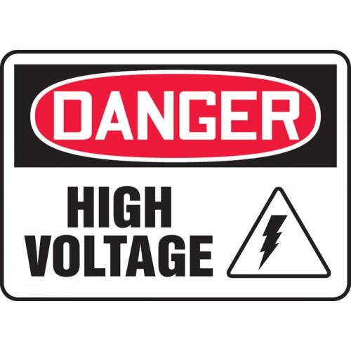 Accuform, MELC029VS, 7" x 10" Adhesive Vinyl Sign: "Danger High Voltage" & Symbol