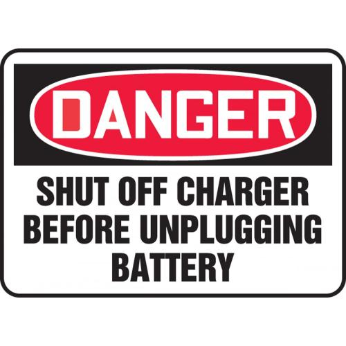 Accuform, MELC177XP, 10" x 14" Accu-Shield Sign: "Shut Off Charger Before Unplugging Battery"
