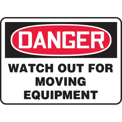 Accuform, MEQD101XV, 7" x 10" Adhesive Dura-Vinyl Sign: "Danger Watch Out for Moving Equipment"