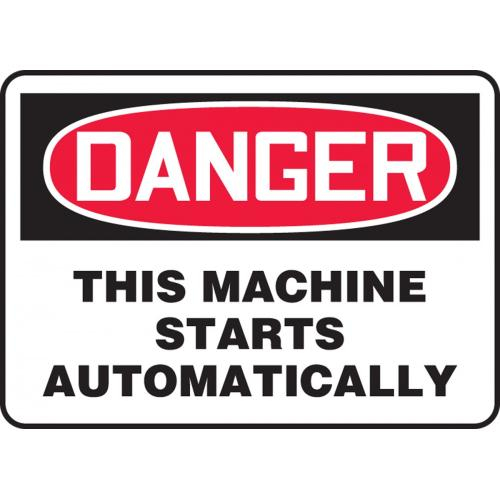 Accuform, MEQM047VA, 10" x 14" Aluminum Sign: "Danger This Machine Starts Automatically"