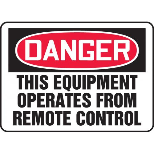 Accuform, MEQM082VS, 10" x 14" Adhesive Vinyl Sign: "This Equipment Operates from Remote Control"