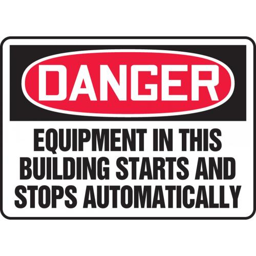 Accuform, MEQM107XP, Accu-Shield Sign: "Equipment in This Building Starts and Stops Automatically"