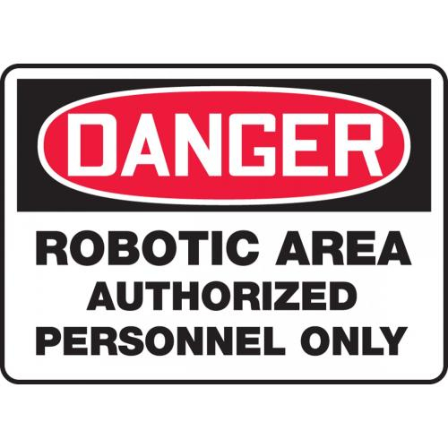 Accuform, MEQM121VS, 10" x 14" Adhesive Vinyl Sign: "Robotic Area Authorized Personnel Only"