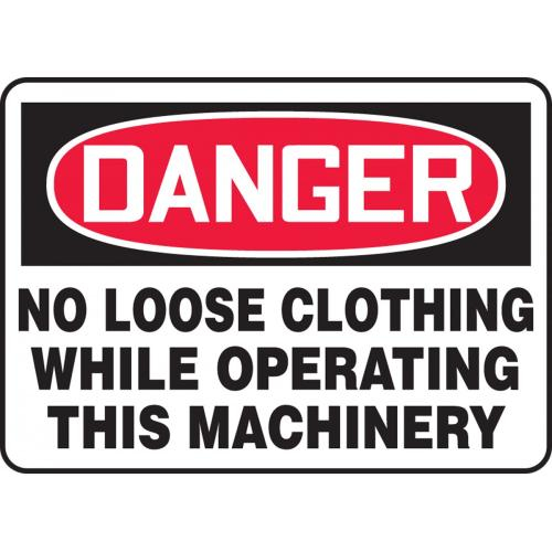 Accuform, MEQM145XL, 7" x 10" Aluma-Lite Sign: "No Loose Clothing While Operating This Machinery"