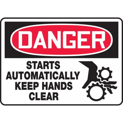 Accuform, MEQM231VS, 7" x 10" Adhesive Vinyl Sign: "Starts Automatically Keep Hands Clear"