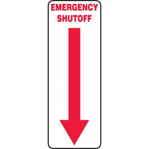 Accuform, MEQM518XT, 14" x 5" Dura-Plastic Sign: "Emergency Shutoff" & Down Arrow Symbol