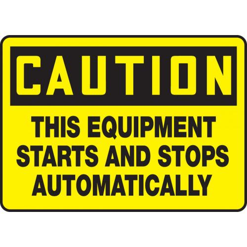 Accuform, MEQM630VS, 10" x 14" Adhesive Vinyl Sign: "This Equipment Starts and Stops Automatically"