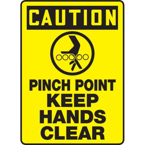 Accuform, MEQM691XT, 14" x 10" Dura-Plastic Sign: "Caution Pinch Point Keep Hands Clear"