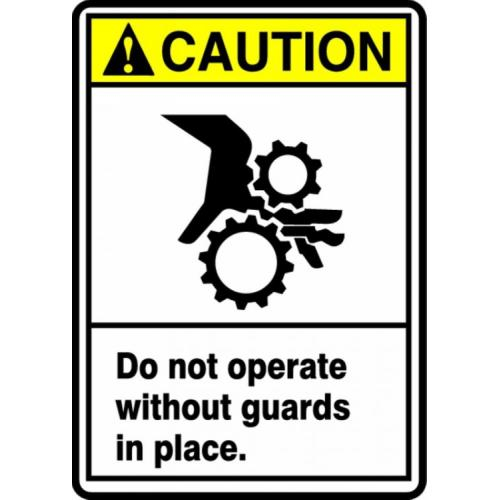 Accuform, MEQM734VA, 14" x 10" Aluminum ANSI Sign: "Do Not Operate without Guards in Place"