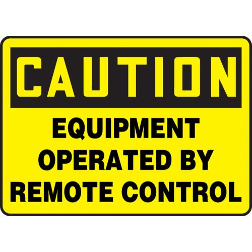 Accuform, MEQM736VA, 10" x 14" Aluminum Sign: "Equipment Operated By Remote Control"