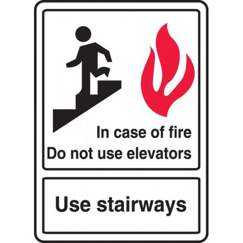 Sign size -14" x 10". Sign: "In Case of Fire Do Not Use Elevators Use Stairways"