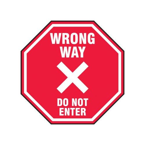 Accuform MFC145RD Red 17" Decal for Carpet "Wrong Way Do Not Enter"