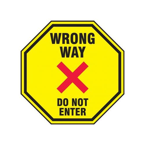 Accuform, MFC145YL, Yellow 17" Octagon Decal for Carpet "Wrong Way Do Not Enter"