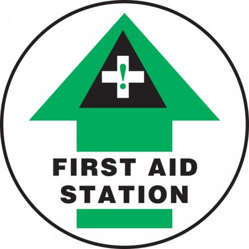 Accuform, MFS2117, Slip-Gard 17" Adhesive Vinyl Floor Sign: "First Aid Station" & Up Arrow