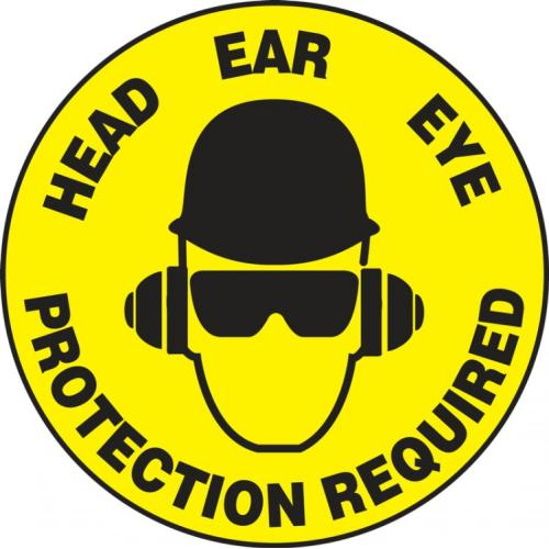 Accuform, MFS323, 8" Adhesive Vinyl Floor Sign: "Head Ear Eye Protection Required"