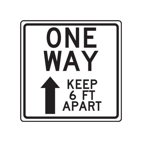Accuform, MFS481, Slip-Gard™ 17" Floor Sign "One Way Keep 6 FT Apart (With Up Arrow Image)"