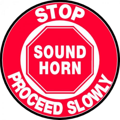 Accuform, MFS818, Slip-Gard 8" Adhesive Vinyl Floor Sign: "Stop Sound Horn Proceed Slowly"