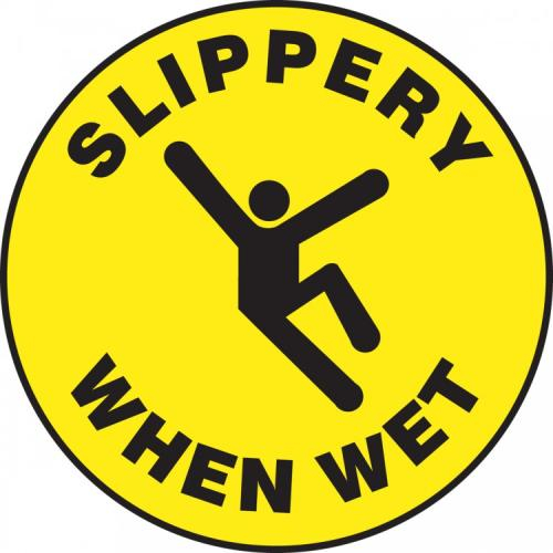 Warn personnel of a surface that becomes slippery when it is wet.