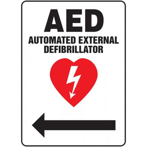Accuform, MFSD420VA, 14" x 10" Aluminum Sign: "AED Automated External Defibrillator" & Left Arrow