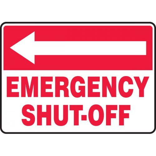 Accuform, MFXG540VS, 10" x 14" Adhesive Vinyl Sign: "Emergency Shut-Off" & Left Arrow Symbol