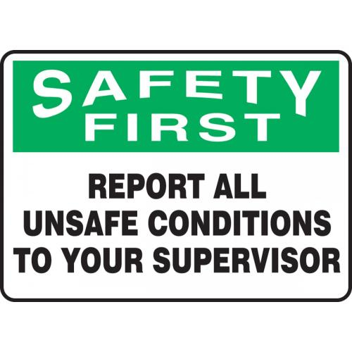 Accuform, MGNF943VP, 7" x 10" Plastic Sign: "Report All Unsafe Conditions to Your Supervisor"