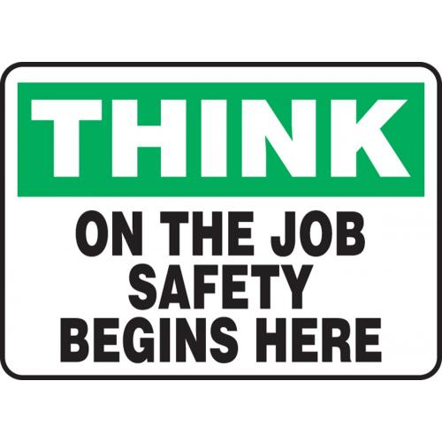 Accuform, MGNF996XT, 10" x 14" Dura-Plastic Sign: "Think on The Job - Safety Begins Here"