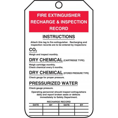 Accuform, MGT208LTP, HS-Laminate Tag: "Fire Extinguisher Recharge & Inspection...", Pack of 25 pcs