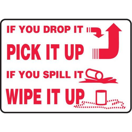Accuform, MHSK549XV, 10" x 14" Safety Sign "If You Drop It Pick It Up - If You Spill It Wipe It Up" Adhesive Dura-Vinyl