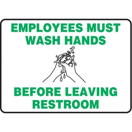 Accuform, MHSK968VS, 10" x 14" Safety Sign "Employees Must Wash Hands Before Leaving Restroom" Adhesive Vinyl