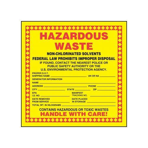 Accuform, MHZW05EVP, 6" x 6" Hazardous Waste Label "Hazardous Waste - Non-Chlorinated Solvents" Adhesive Coated Paper