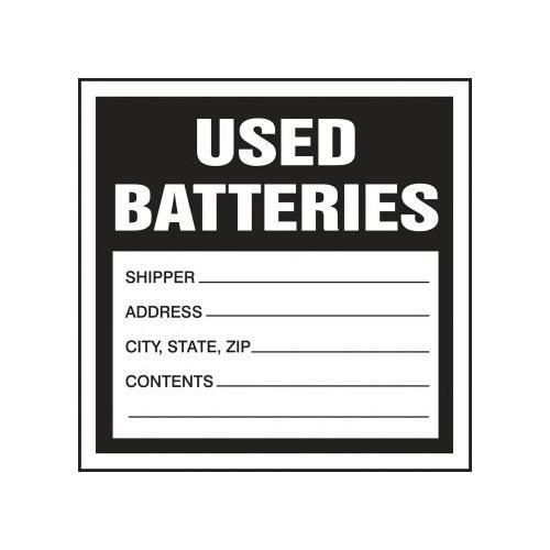 Accuform, MHZW30EVP, 6" x 6" Hazardous Waste Label "Used Batteries" Adhesive-Poly Sheet