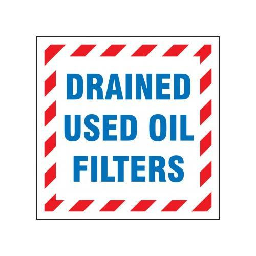 Accuform, MHZW505PSP, 6" x 6" Drum & Container Label "Drained Used Oil Filters" Adhesive Coated Paper