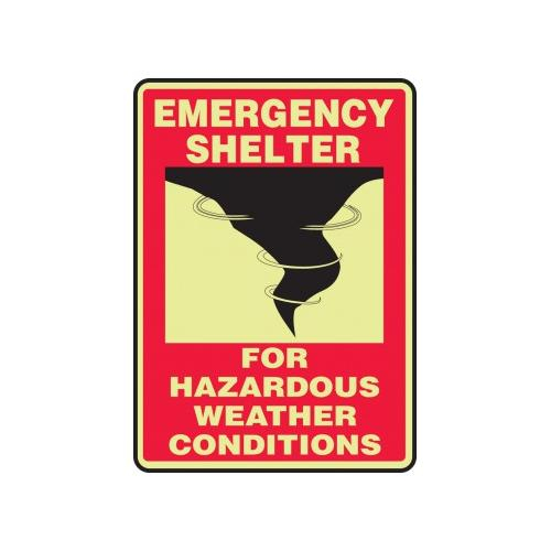 Accuform, MLFE546GP, 14" x 10" Glow-In-The-Dark Safety Sign "Emergency Shelter For Hazardous Weather Conditions" Lumi-Glow Plastic