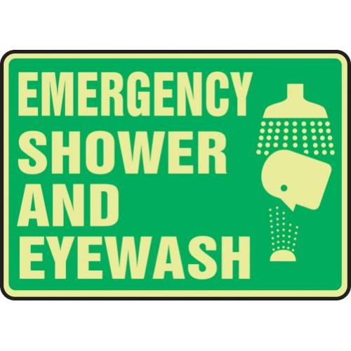 Accuform, MLFS566GF, 10" x 14" Glow-In-The-Dark Safety Sign "Emergency Shower and Eyewash" Lumi-Glow Flex