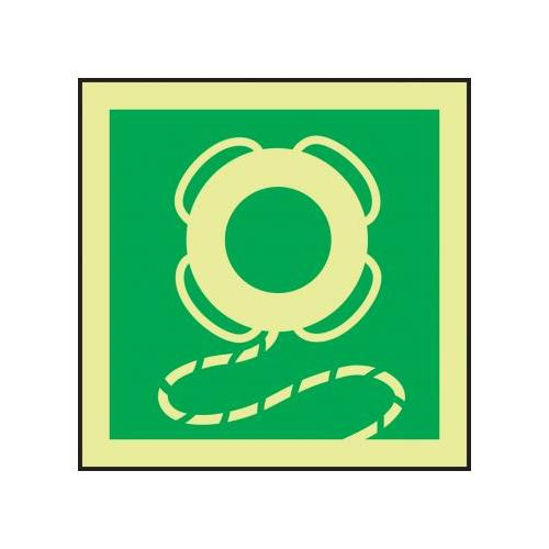 Accuform, MLMR114GE, 6" x 6" IMO Evacuation & First Aid Sign "Lifebuoy with Line" Dura Lumi-Glow Adhesive