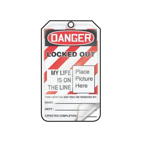 Accuform, MLT609LCM, OSHA Danger Self-Laminating Safety Tag "Locked Out" Self-Laminating PF-Cardstock