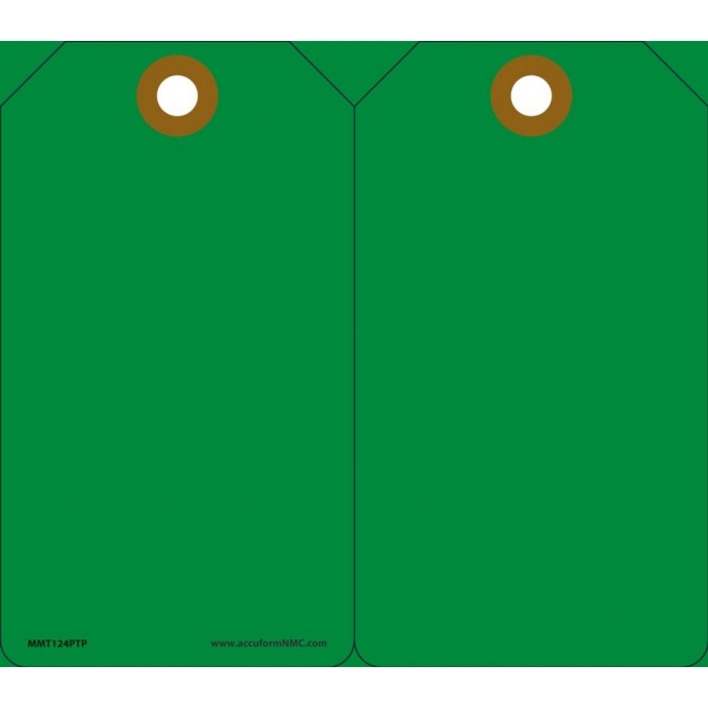 Accuform MMT124PTP Green Tag Blank RP-Plastic 25 Pack