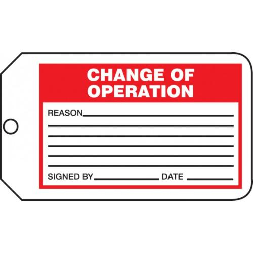 Accuform, MMT334CTP, Safety Tag "Change Of Operation" PF-Cardstock